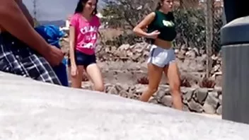 Meitenes peldkostīmos un bez nāca uz slēpto kameru